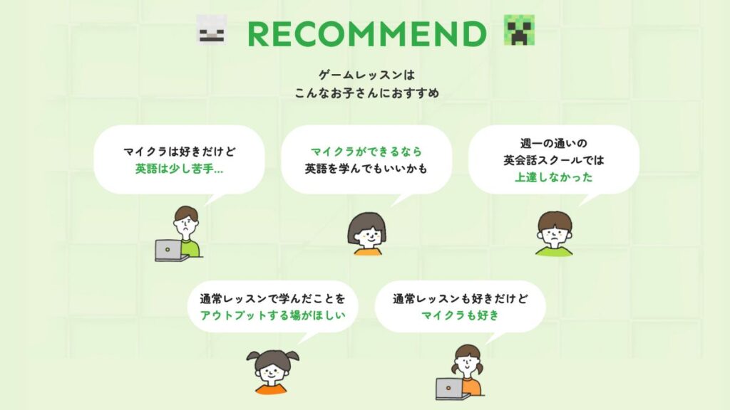 マインクラフトを楽しみながら、会話を英語で行うこちらのレッスンはとっても人気!